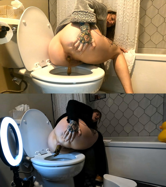 Now I need to shit so bad that it’s too late to go to the toilet! I already feel it poking out! The anal stimulation is incredibly good and I decide to have some fun with it… I lay over the bed, exposing myself to you. I masturbate, rubbing my pussy as I try to hold in my huge load. I cum anally as the shit pushing it’s way out, omg it feels SOOO good!